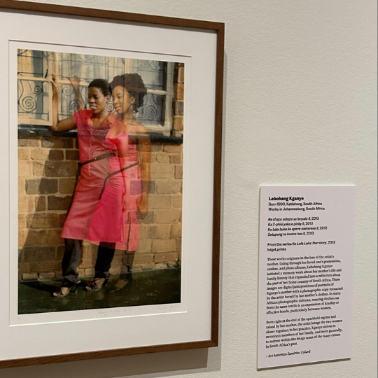 "This piece by Lebohang Kganye moved me in ways I wasn’t prepared for. Seeing the series together, off first glance felt like a time capsule. This series holds open a door for the viewer to climb into and connect with the subject, her mother and herself. Learning about her process to recreate this ghost like doubling connected me with a deeper understanding of the work, of her and her mother and of me and mine. It felt like she was almost an ancestor of hers, standing next to her so she is never alone but also an homage to seeing herself in her mother. Kganye’s piece pushed me to think further about this notion i’ve been walking myself through and that’s humanizing my mother– giving her space because this is her first time being a mother. It’s everyone’s first time. Every other person is just different version of yourself. We are not that far removed from our parents, our ancestors and even our descendants regardless of if they’re on the physical plane with us just yet."